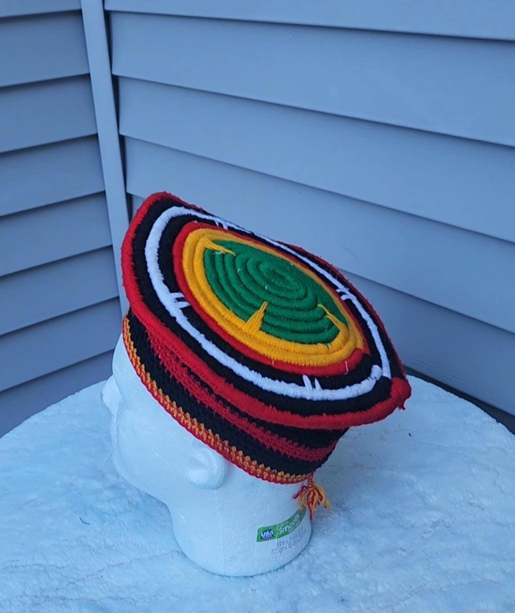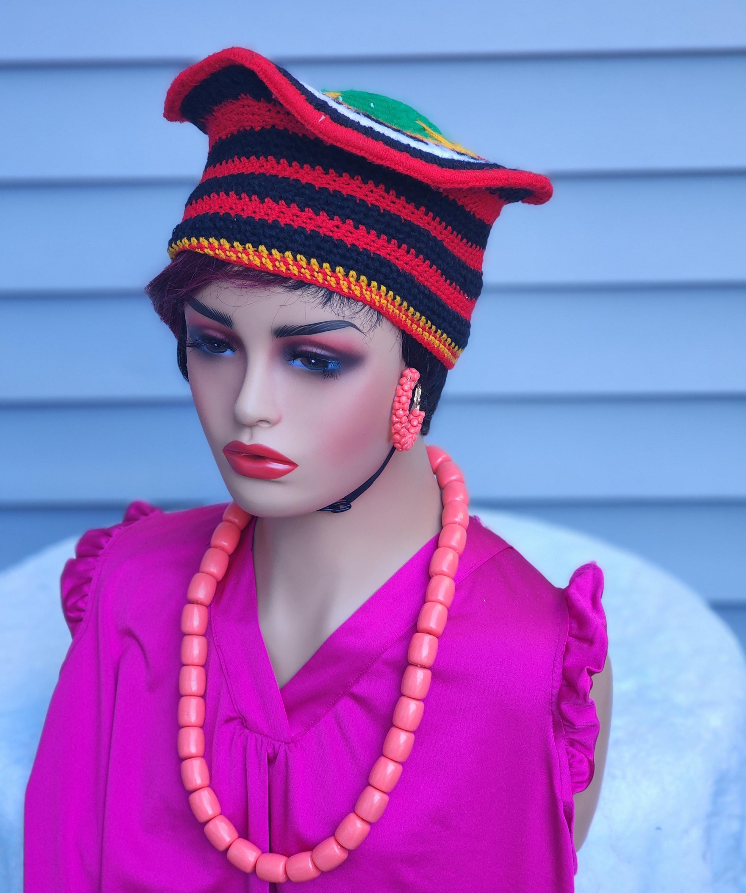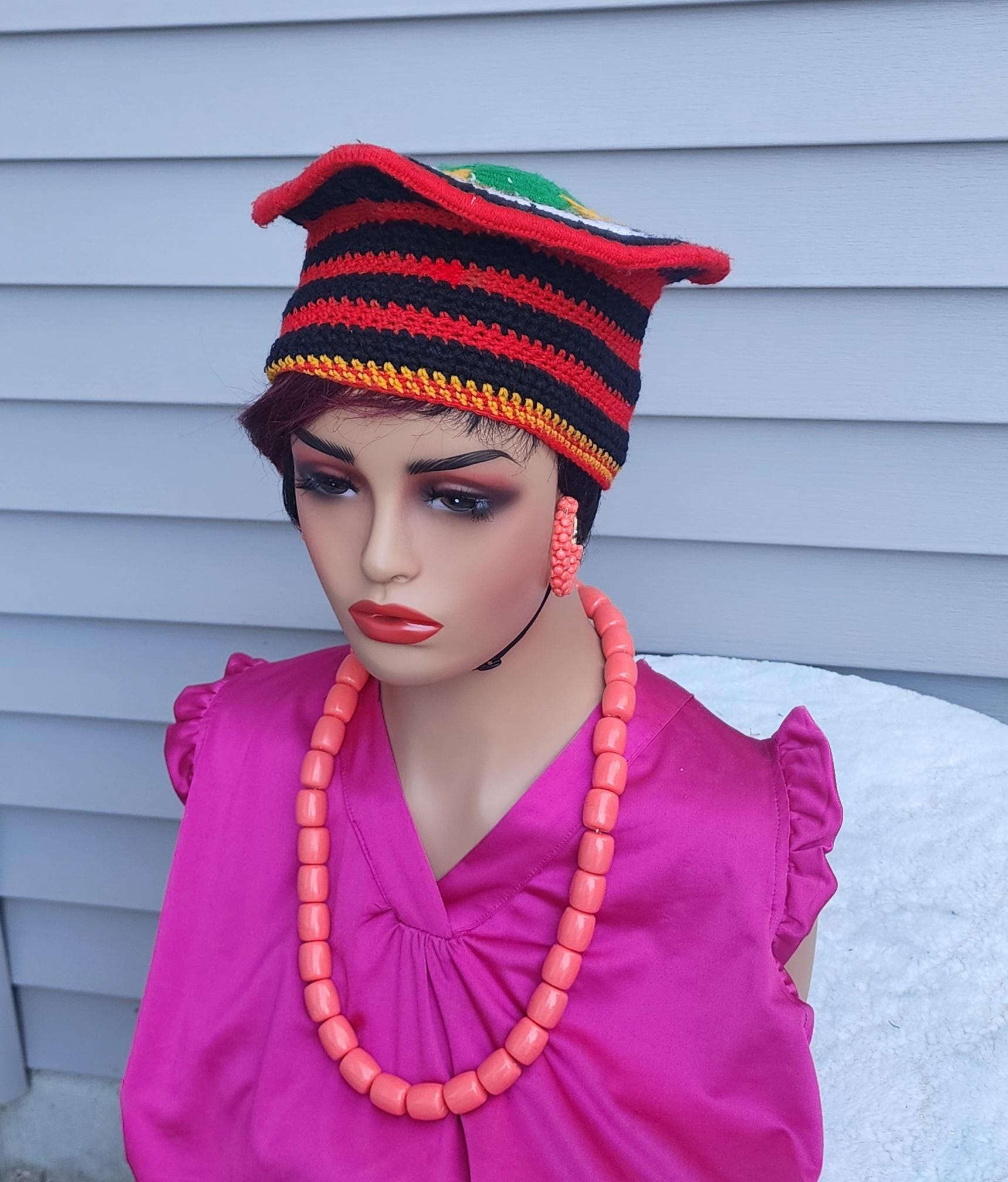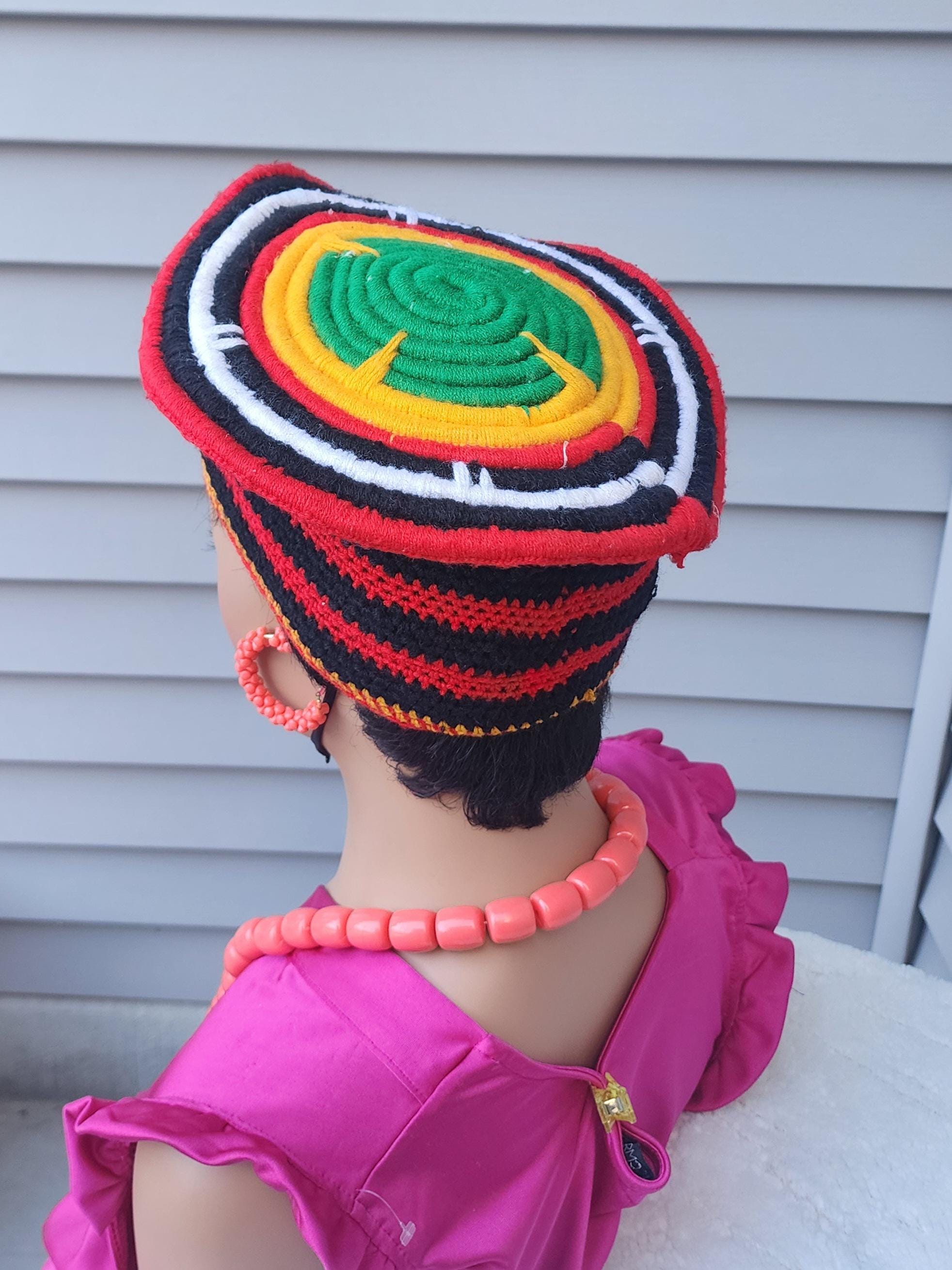 Traditional hat handwoven by local artisans in Bamenda Cameroon. They use very beautiful colors of thread (red, yellow, white, green, orange) to bring out the designs. It is very airy and suitable for all seasons. It is a completely unisex hat