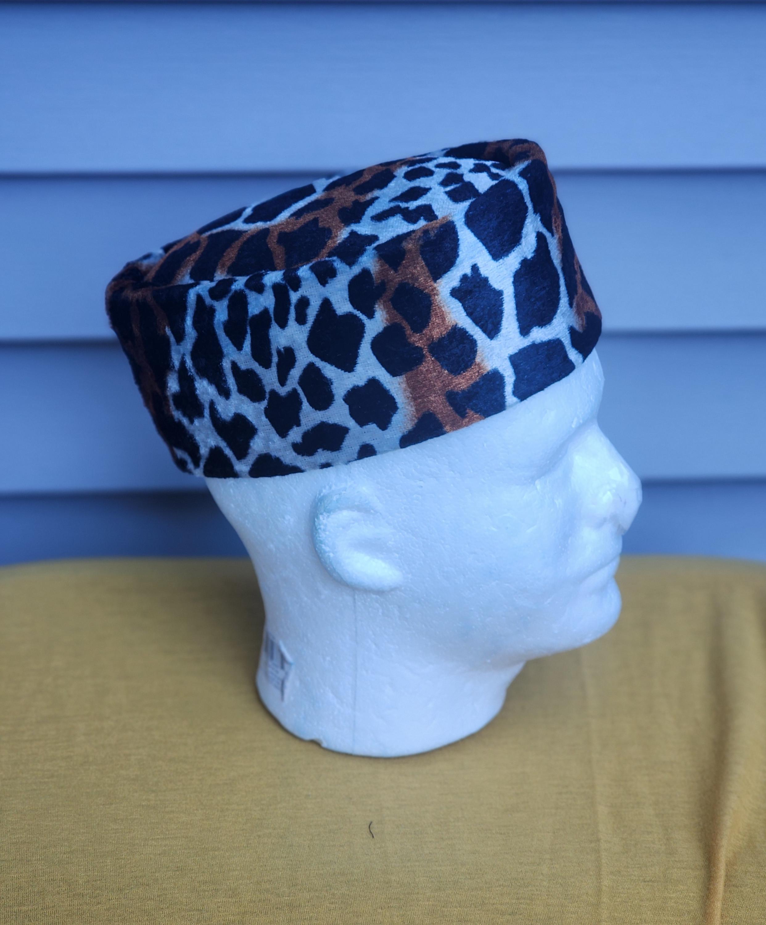 This beautiful traditional hat, also called the Mobutu hat, is handmade. It is made of velvet cloth. It is the hat of elders, it is the hat of chiefs and kings. It is the symbol of African culture.