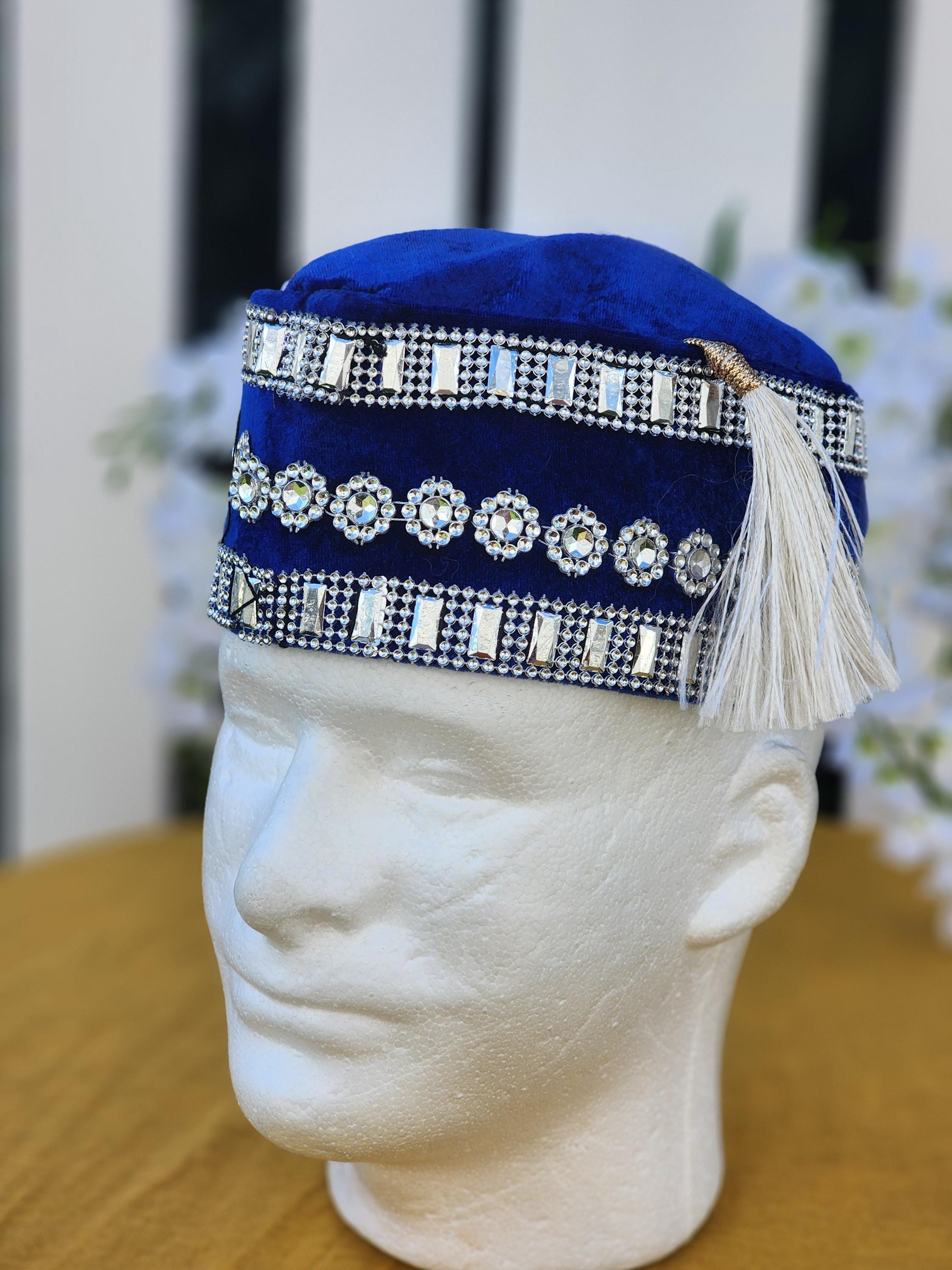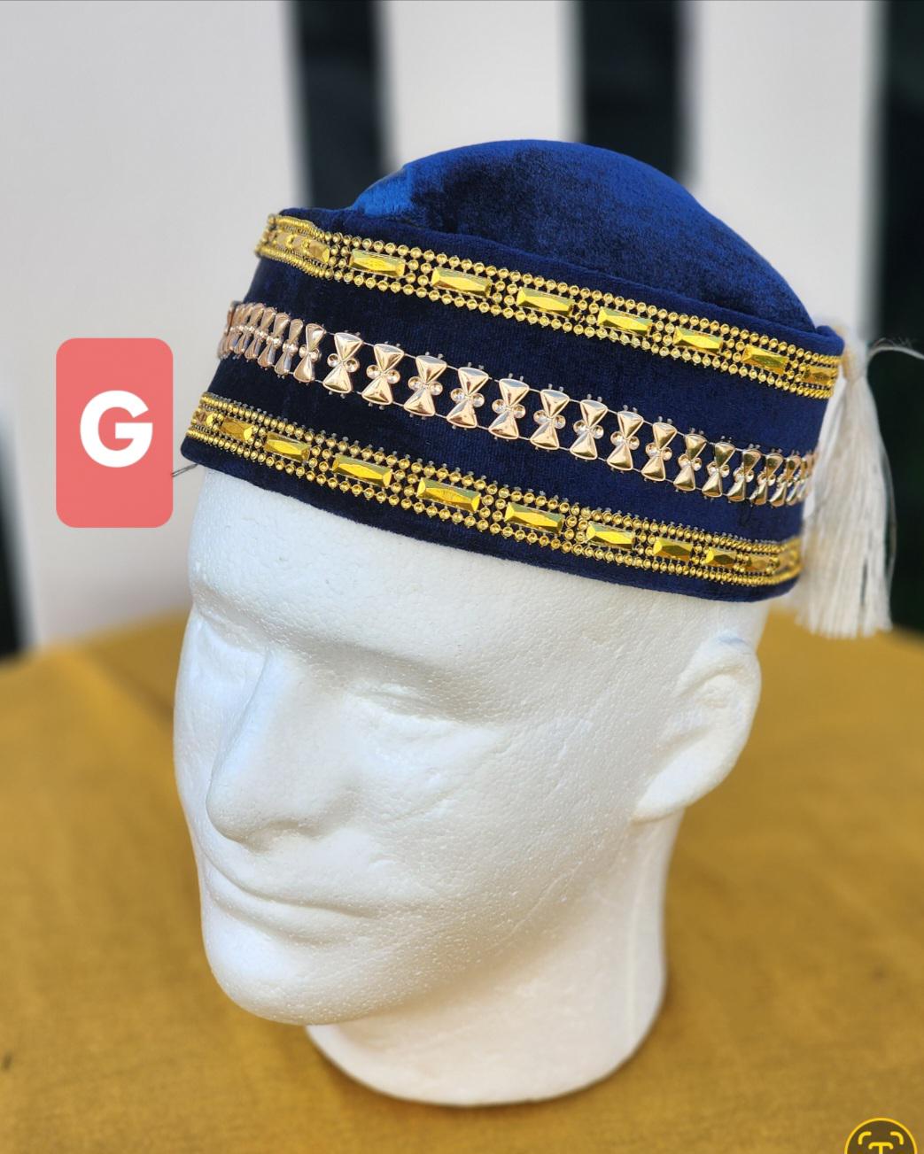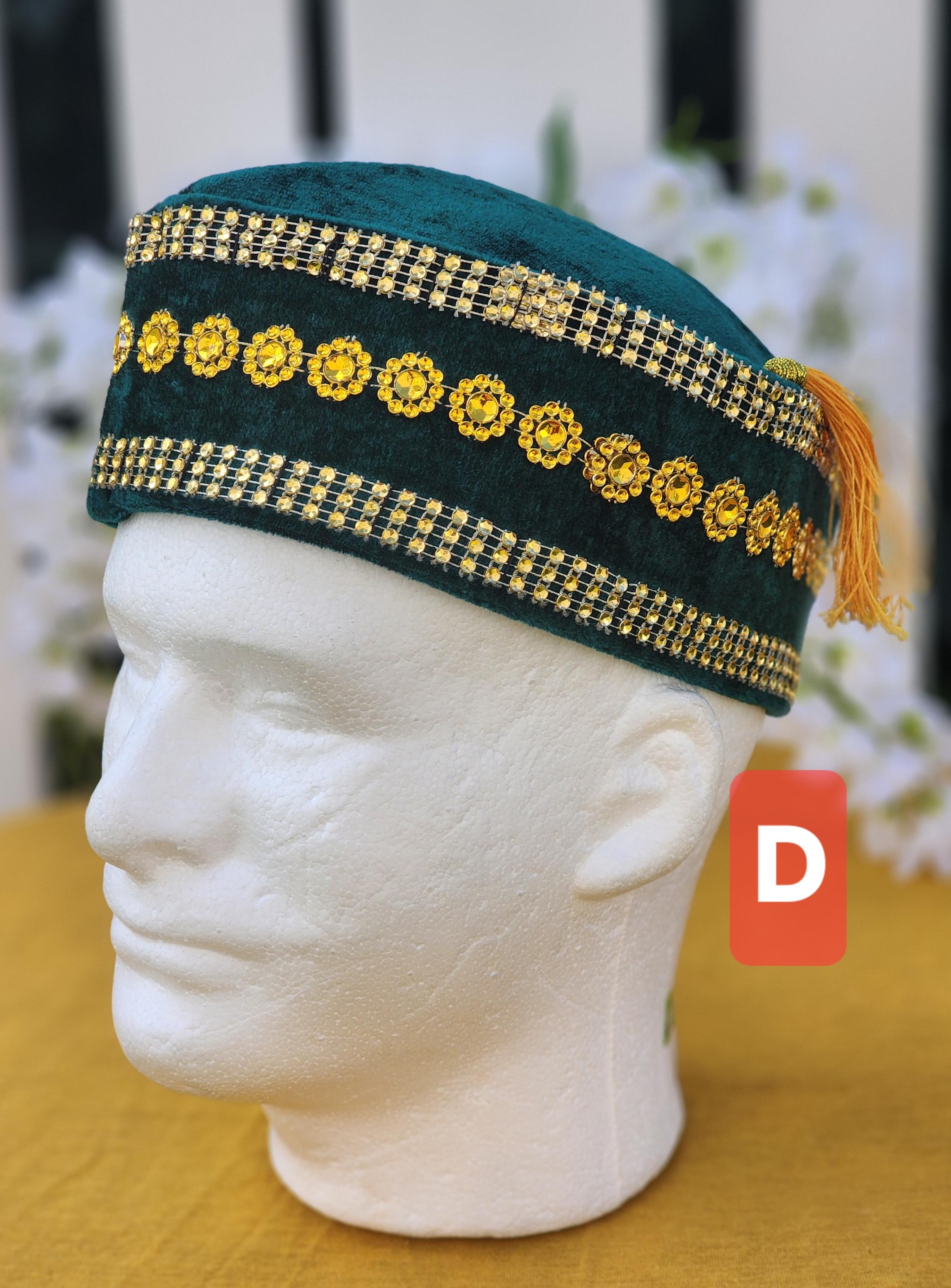 these hats are made with velvet fabric and decorated .They are perfect for traditional weddings.