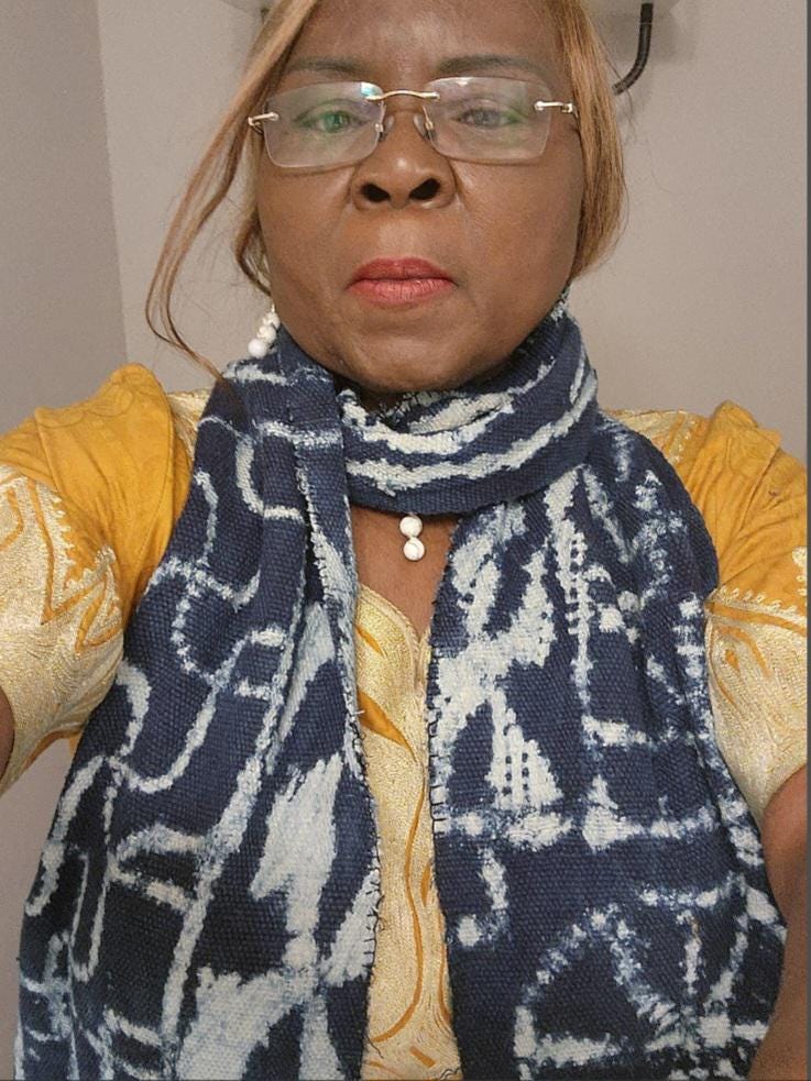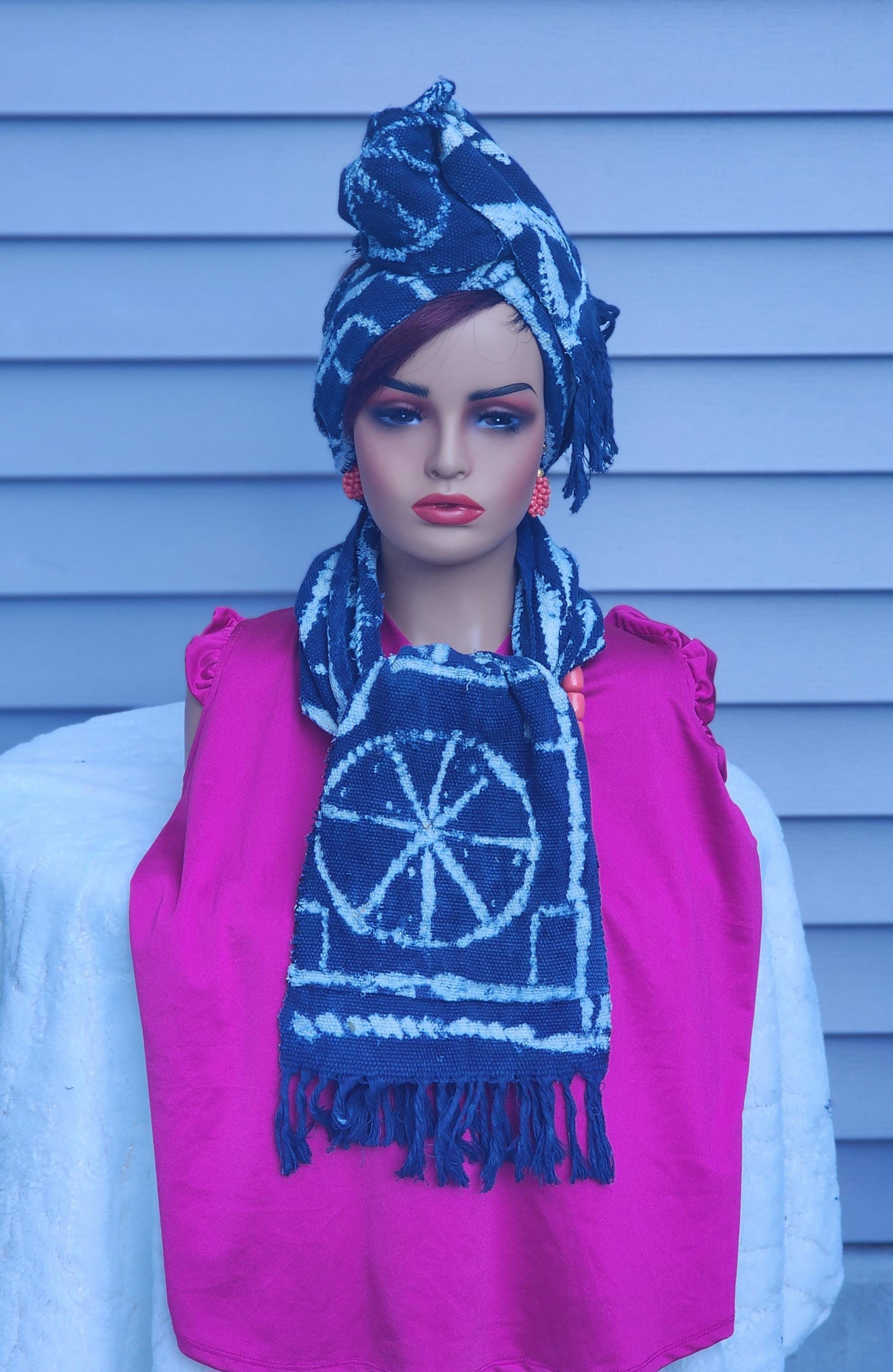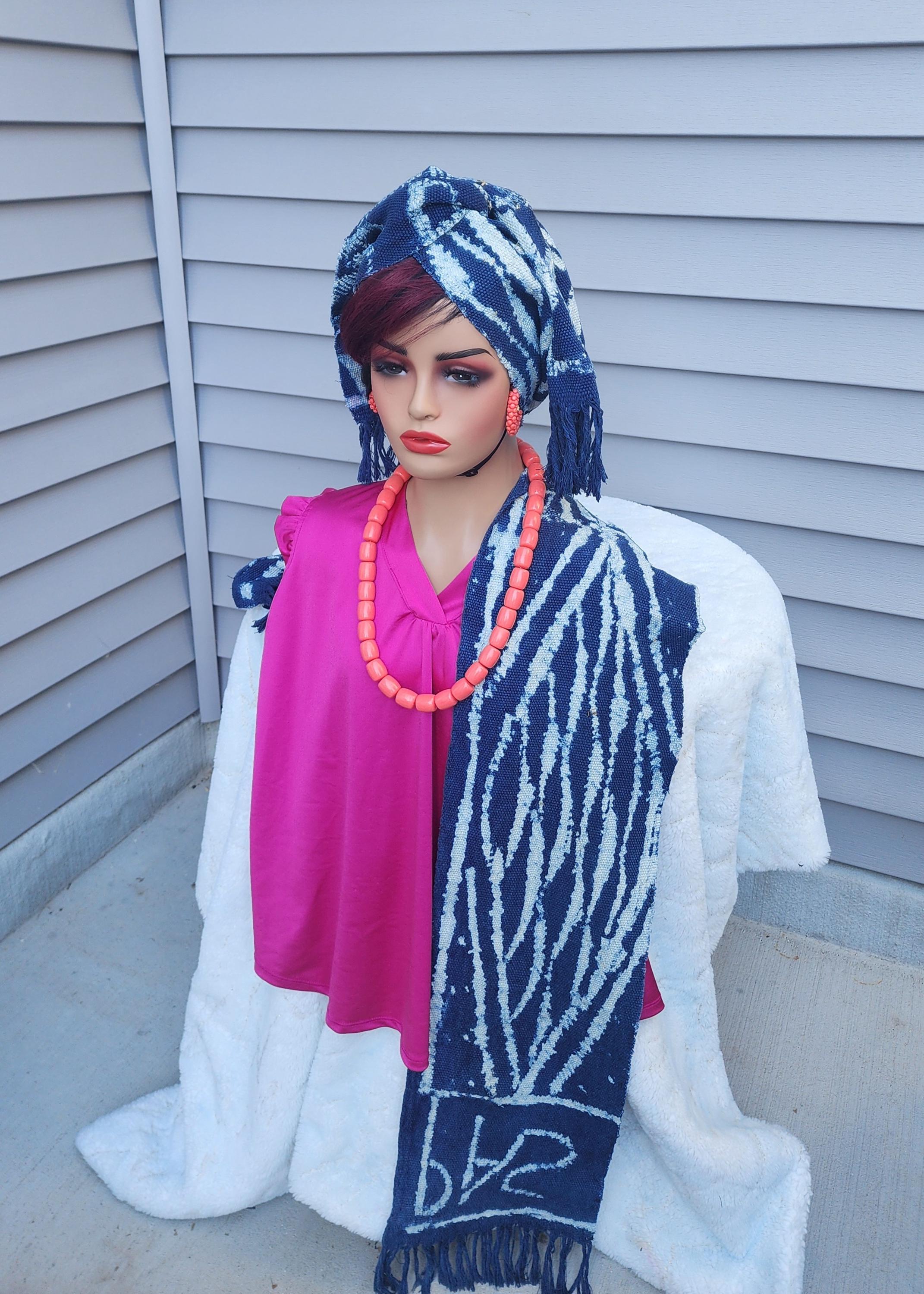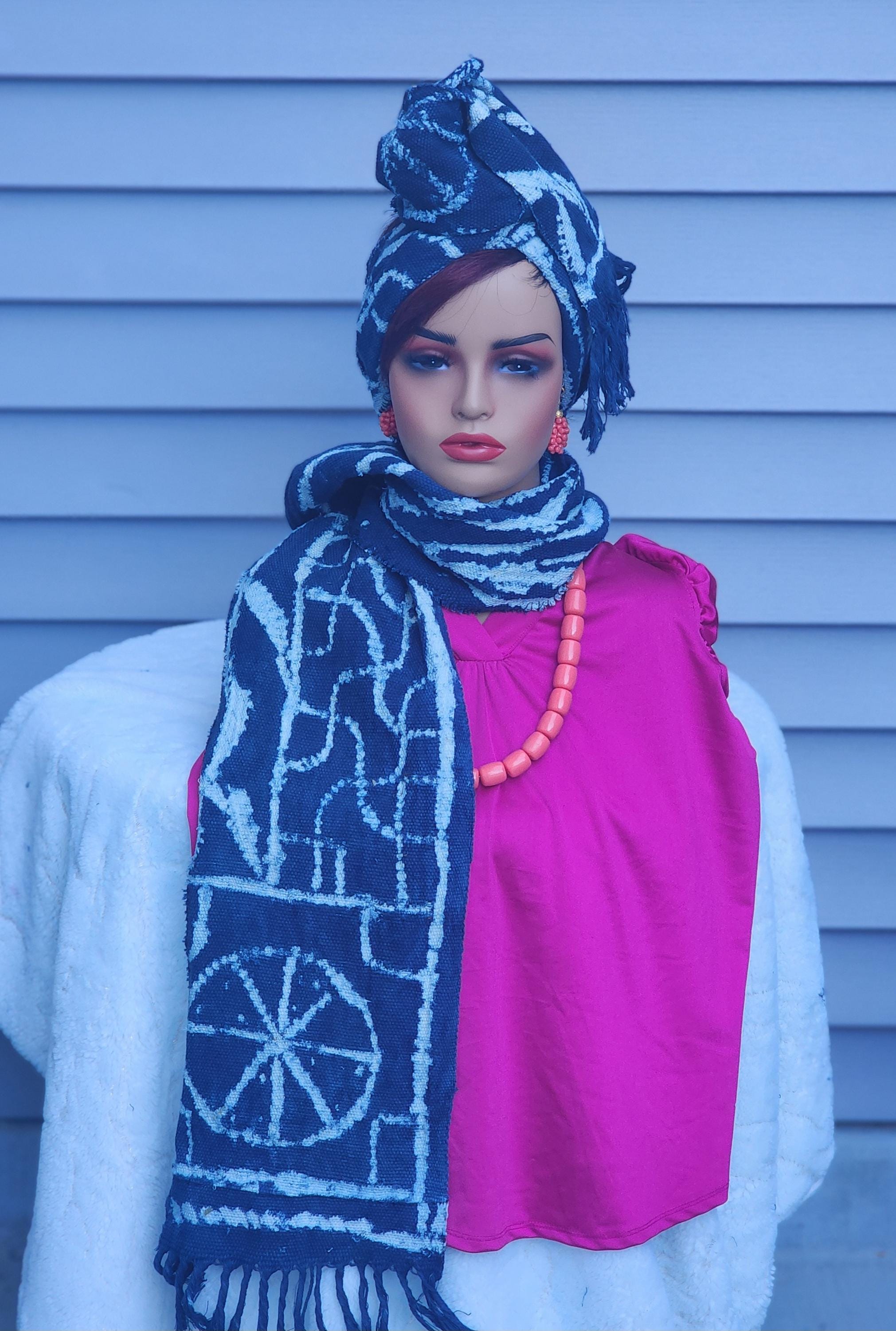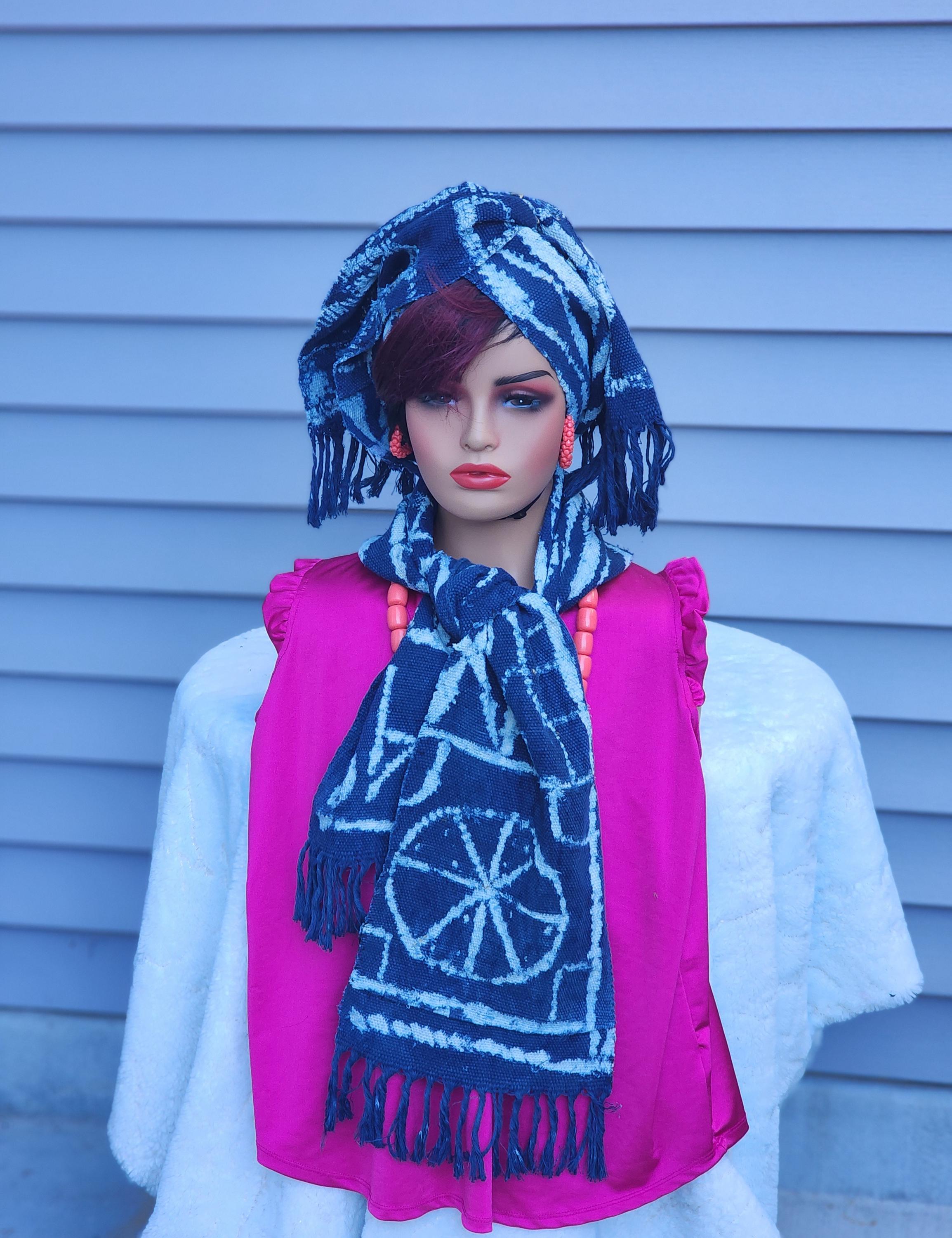 This is a scarf made of original handmade Ndop cloth / Ndop cloths originate from the Grassfields region of Cameroon and are mostly worn for very important ceremonies and rituals by the Bamileke tribes. The different symbols on the cloths, such as circles, lines and diamonds, represent the different beliefs of the peop