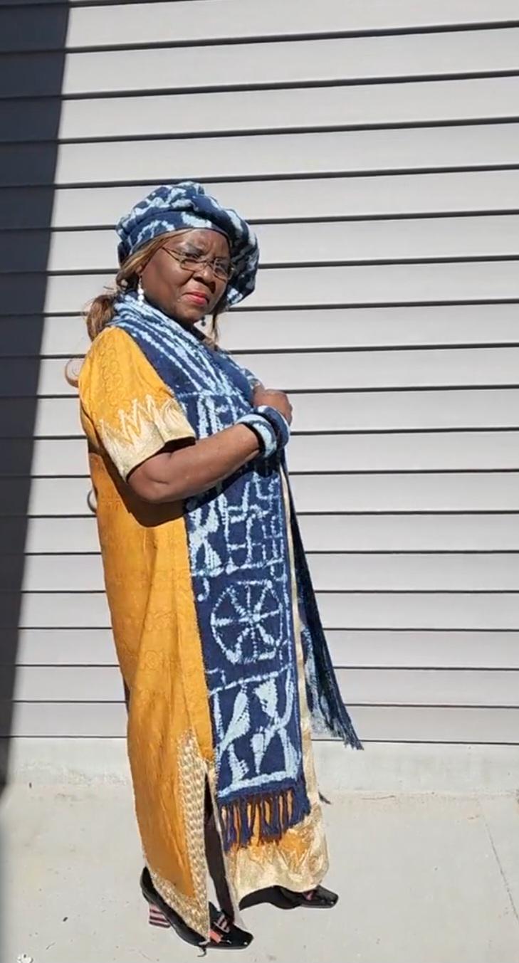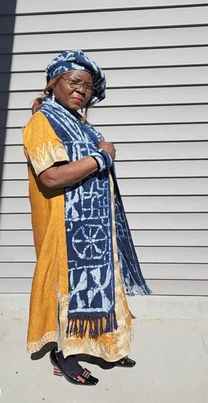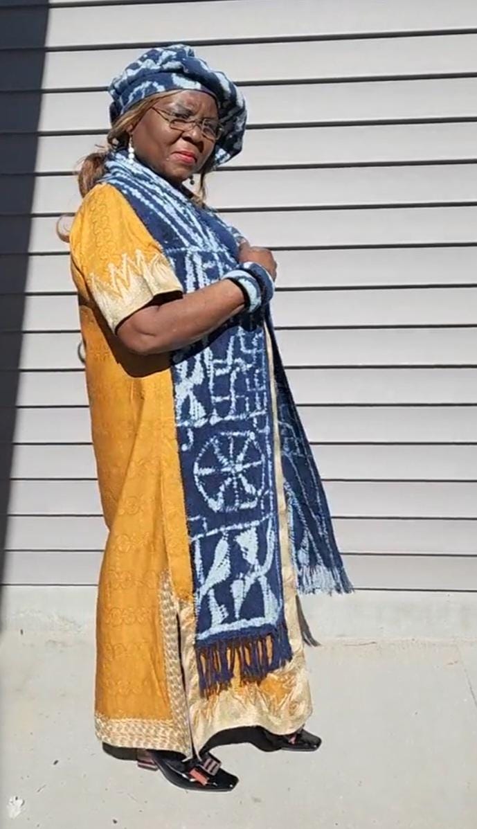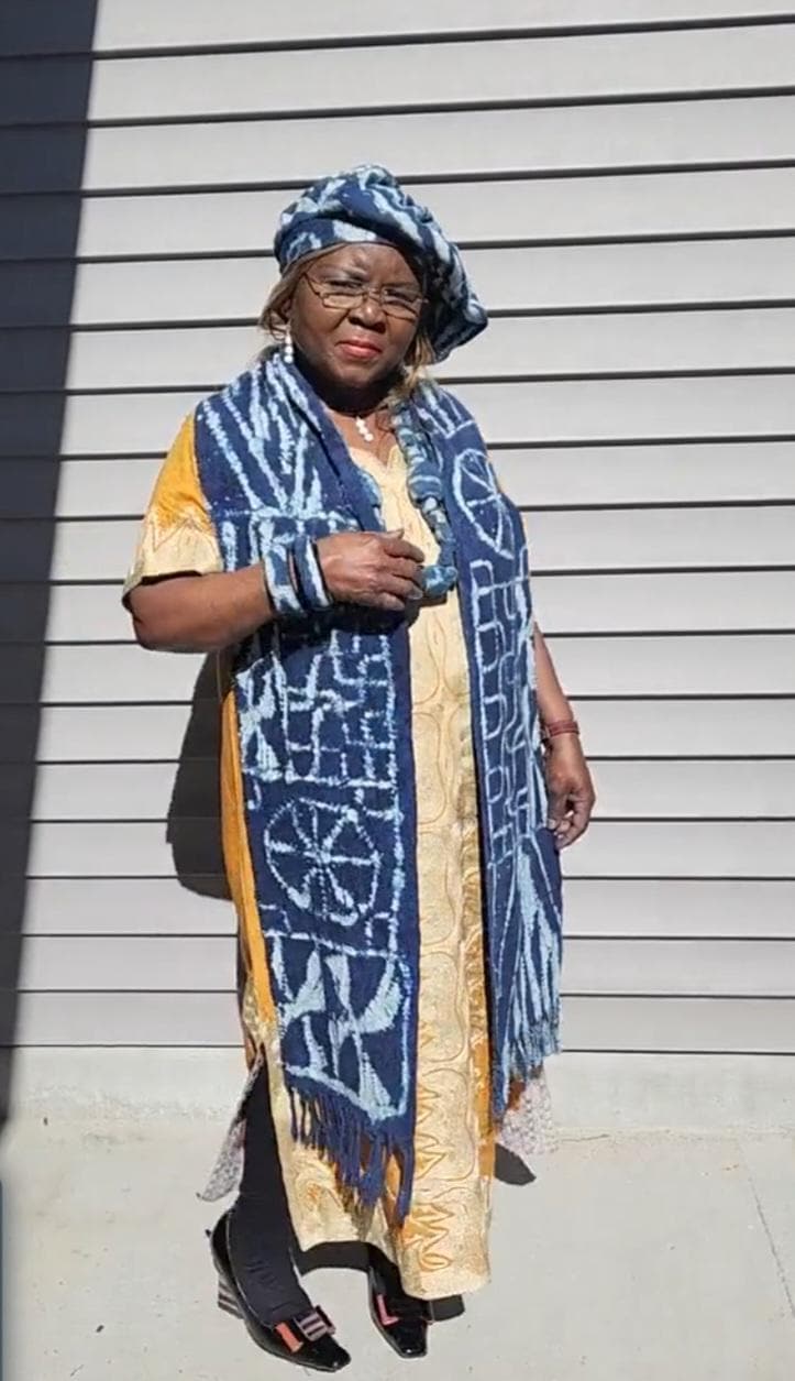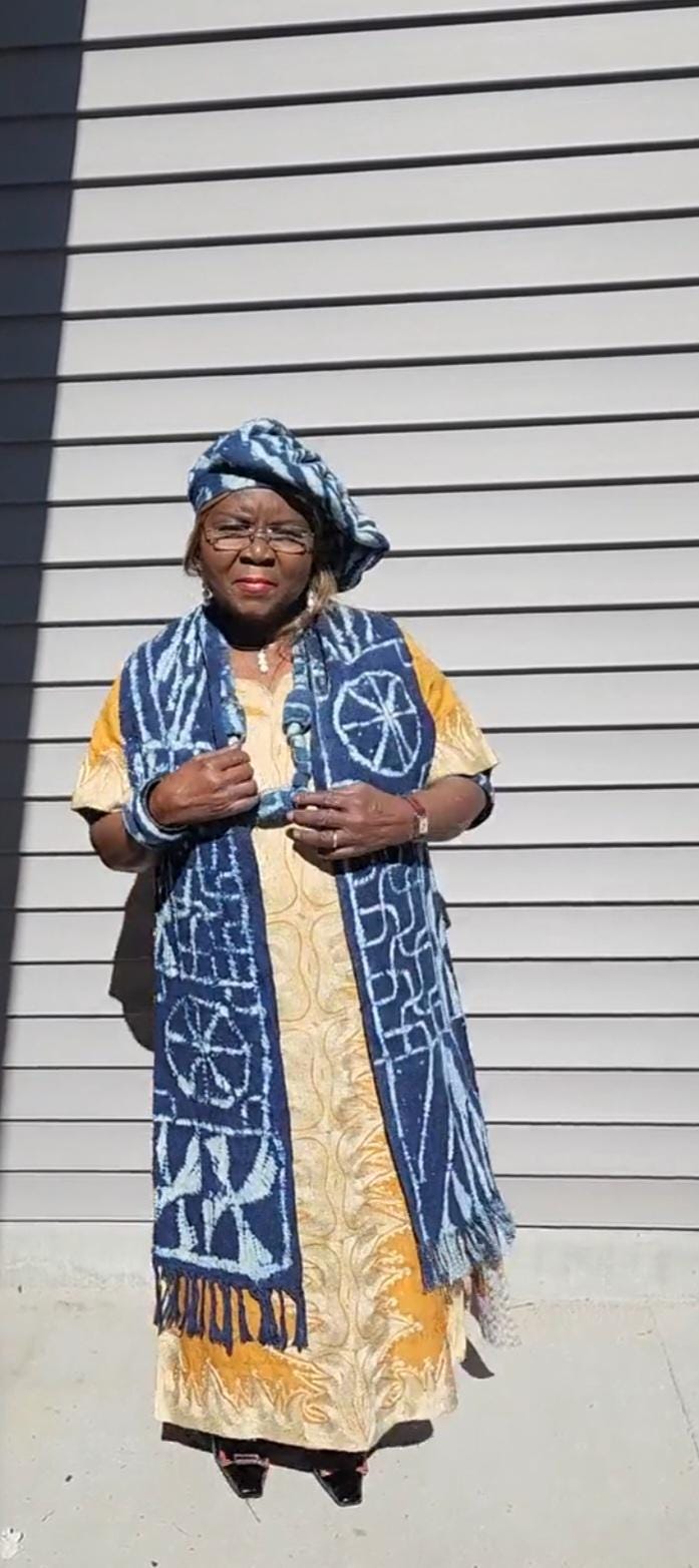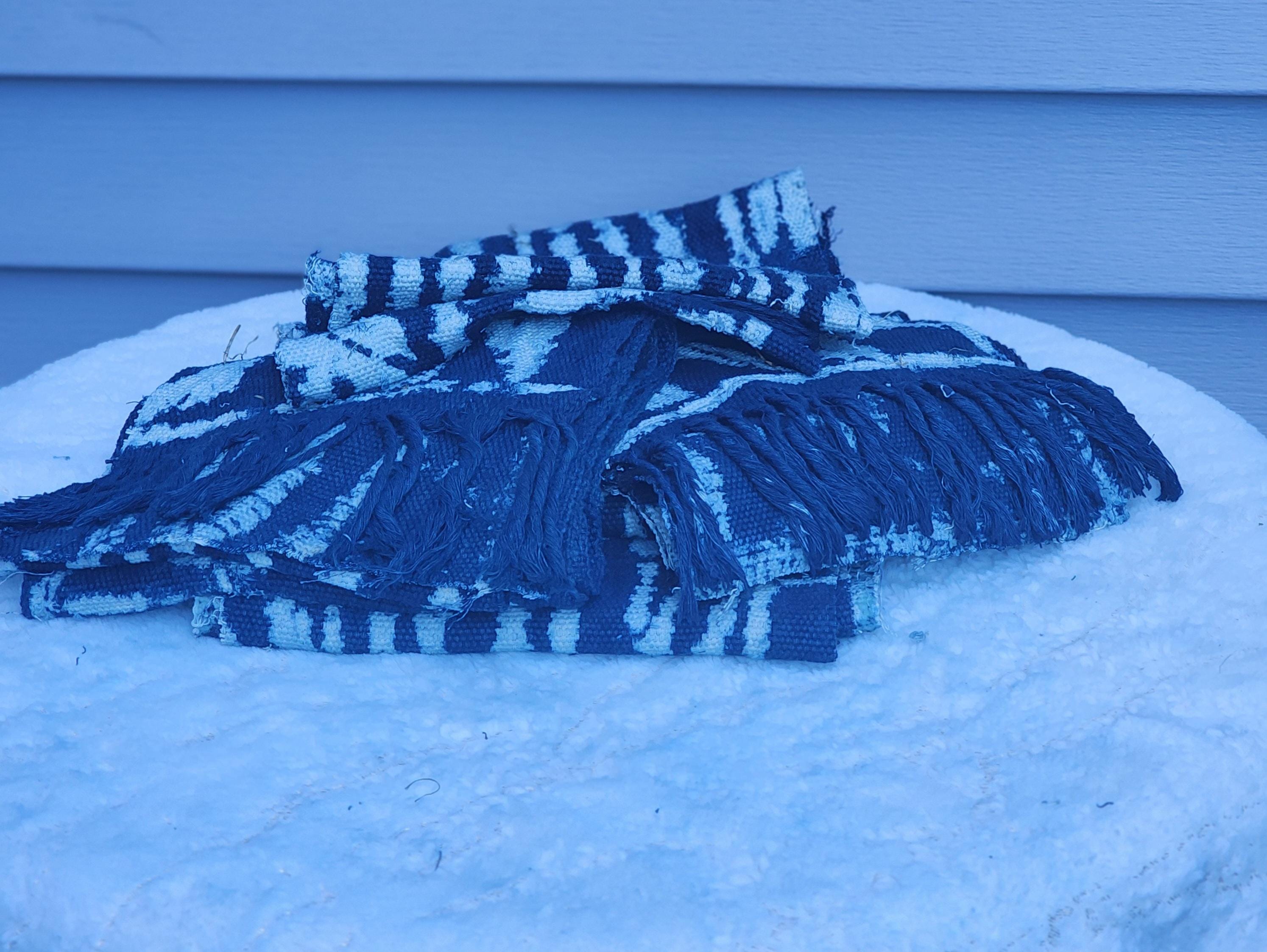 This is a scarf made of original handmade Ndop cloth / Ndop cloths originate from the Grassfields region of Cameroon and are mostly worn for very important ceremonies and rituals by the Bamileke tribes. The different symbols on the cloths, such as circles, lines and diamonds, represent the different beliefs of the peop
